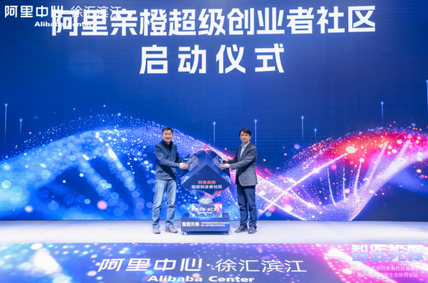 上海市徐汇区副区长陈勇(右)与阿里巴巴集团副总裁刘菲(左)共同启动阿里亲橙超级创业者社区